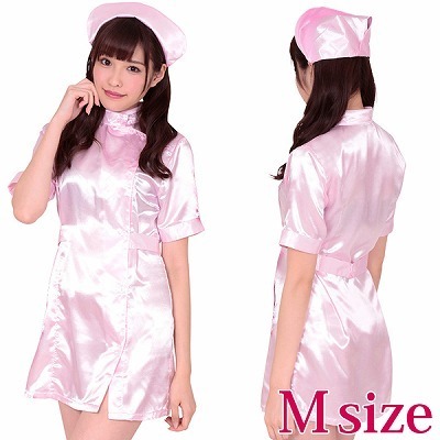 ワンピース&ナースキャップがセットになったコスプレ。ミニ丈ワンピースのギリギリ感と、清楚なイメージのナース姿はとっても誘惑的!光沢感のあるキュートなピンクカラーが、セクシーさと可愛らしさの両方を演出してくれます。フロントはボタン式で下まで開きます。※Lサイズ(b18108)、LLサイズ(b18127)あります。