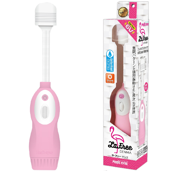 柔軟に曲がる長いフレキシブルネックがピンポイントにフィットするピンクカラーの電マ「ラ・フリー」(電池式)。無段階調整式の簡単操作で10種類の振動パターンが楽しめる!総重量およそ80gの持ちやすい超軽量型の電マです。単4電池を4本使用、完全防水仕様※コントローラ部分は非防水