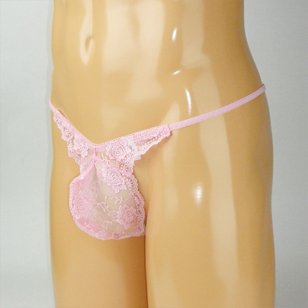 メンズ スケスケシースルーレース付き脇細Gスト ピンク M