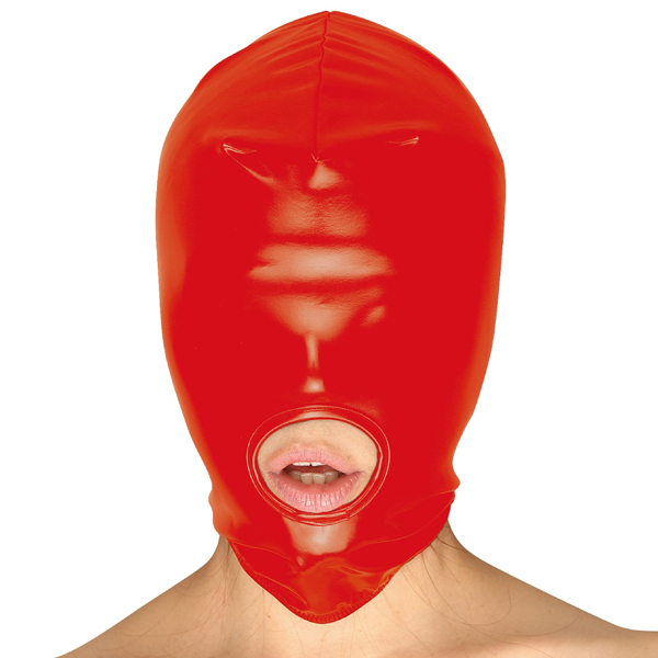 目隠し・アイマスク > エナメル2wayストレッチ口アキ全頭拘束マスク レッド