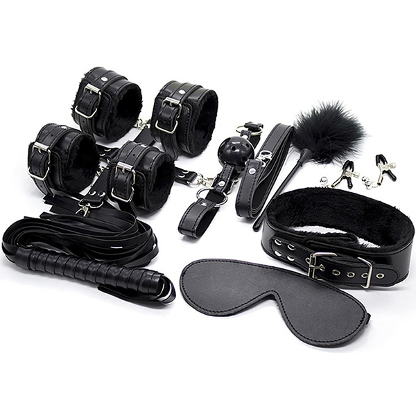 ▼仕様:パッケージ:38.0×27.0×6.0cm セット内容:縄、アイマスク、口枷、手枷、足枷、首輪、ムチ、クリップ、ティーザー、連結用十字ベルト