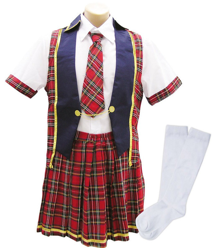 ▼仕様:フリーサイズ(メンズ) マネキン:胸囲97cm・胴回り75cm・腰周り95.5cm セット内容:ブラウス・ベスト・ネクタイ・スカート・ソックス パッケージ:35.5×25.0×5.5cm