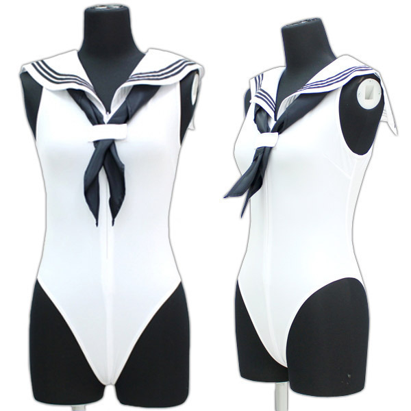 【3380円★数量限定】セーラーノースリーブレオタード 白 BIG<お一人様1点限り>