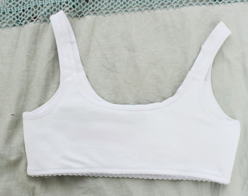 爽やかさ100%!フロントにちょこんと付いた水色リボンがキュートな純白のスポブラ単品(BIG)。